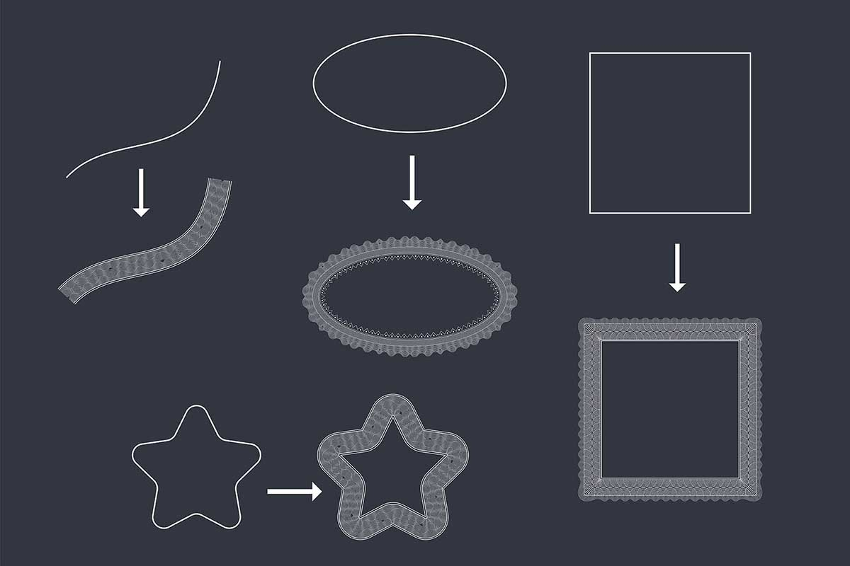Furthermore, the Security Border Certificate Pattern offers a variety of brush patterns, allowing you to customize the appearance of the border to suit your preferences. Experiment with different brush styles, strokes, and textures to achieve the perfect balance of elegance and security for your certificates and documents.