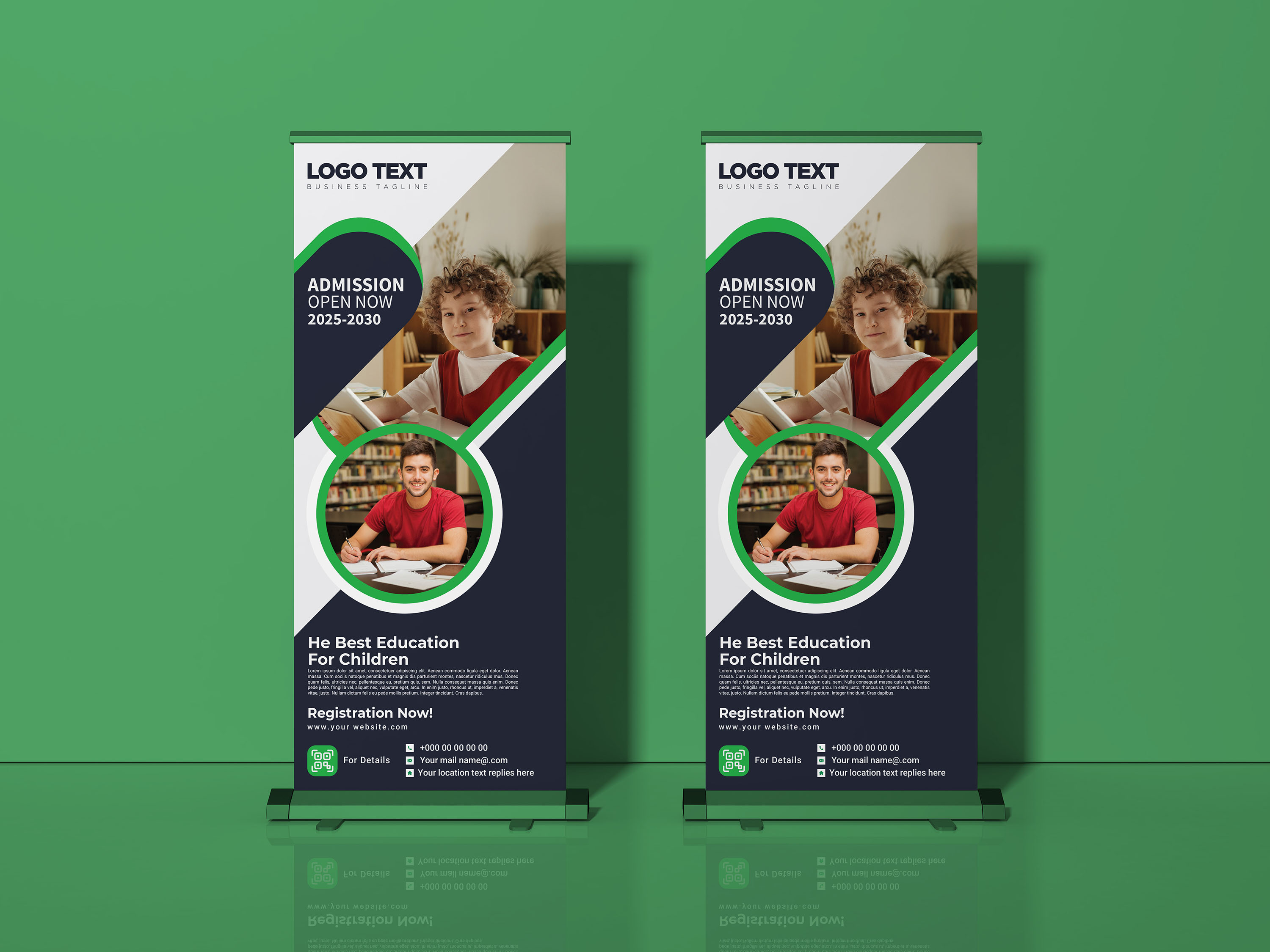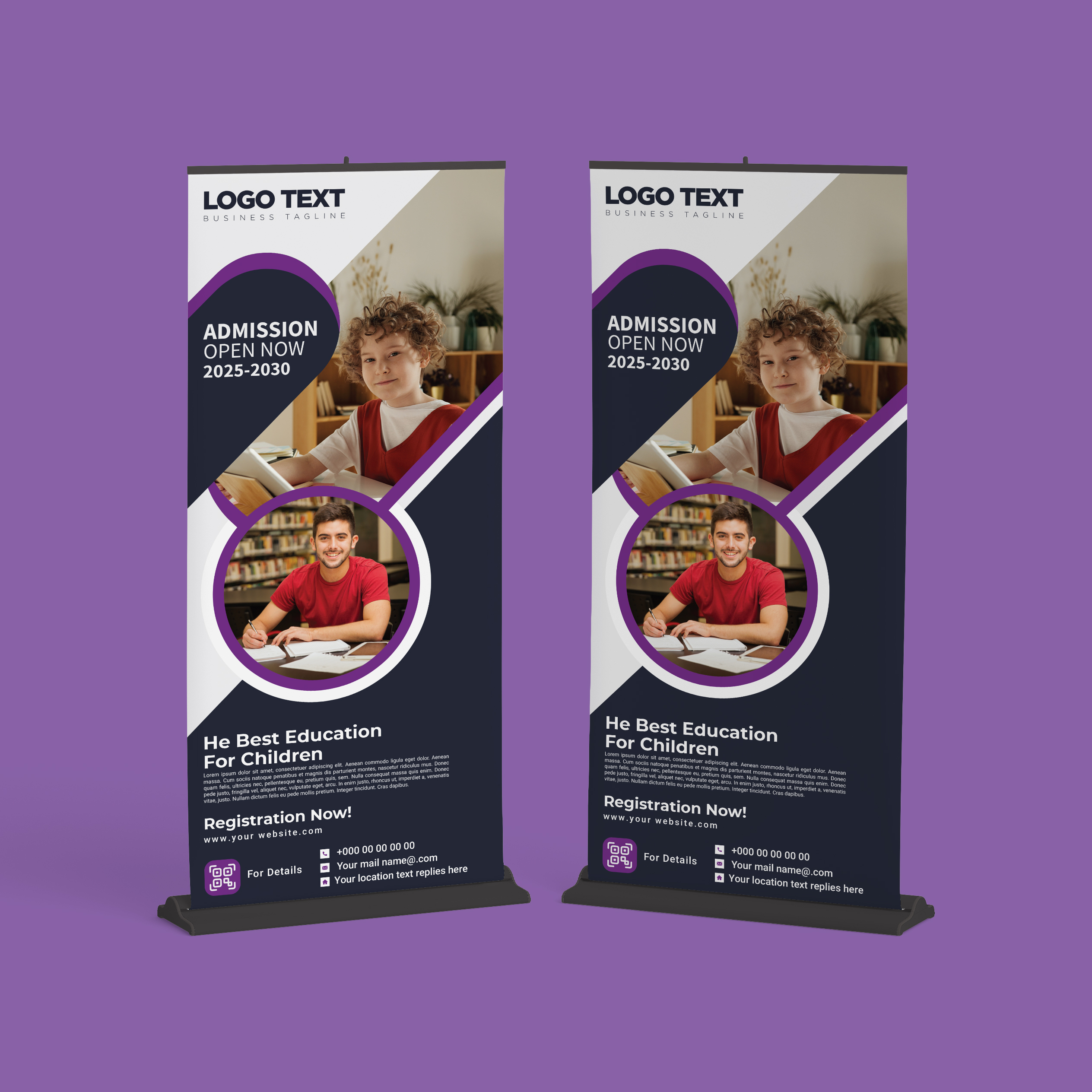 Junior School Education Roll Up Banner Design is a marketing tool that features a vertical banner layout and is designed to promote the opening of school admission. This design is typically used in schools to draw attention to the upcoming admission season and encourage parents and students to enroll.