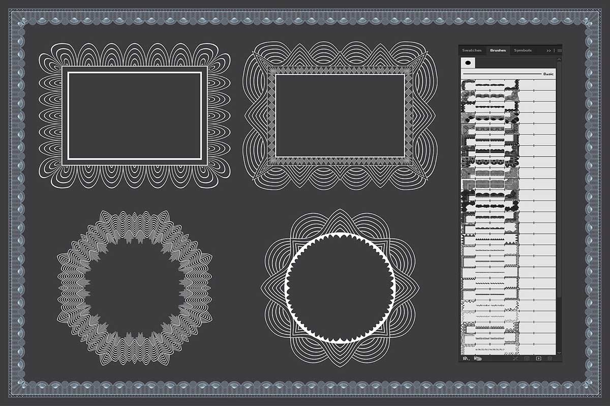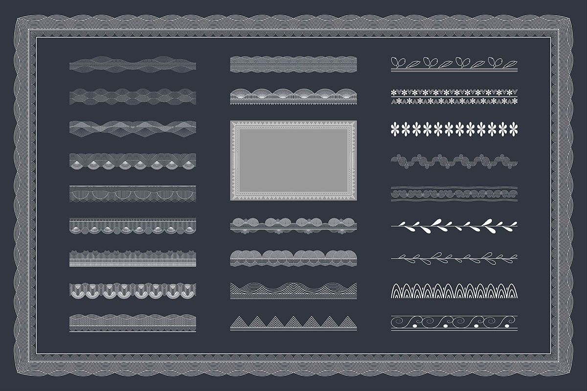 Furthermore, the Security Border Certificate Pattern offers a variety of brush patterns, allowing you to customize the appearance of the border to suit your preferences. Experiment with different brush styles, strokes, and textures to achieve the perfect balance of elegance and security for your certificates and documents.