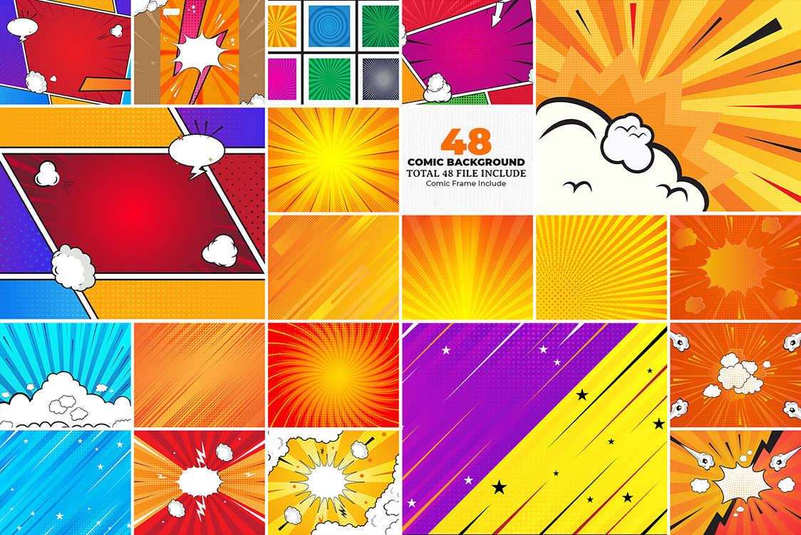 Introducing our 48 Comic Background Bundle, a sensational collection of dynamic vector backgrounds that will take your creative projects to the next level. Bursting with energy and style, these backgrounds are perfect for comic-inspired designs, illustrations, and more.